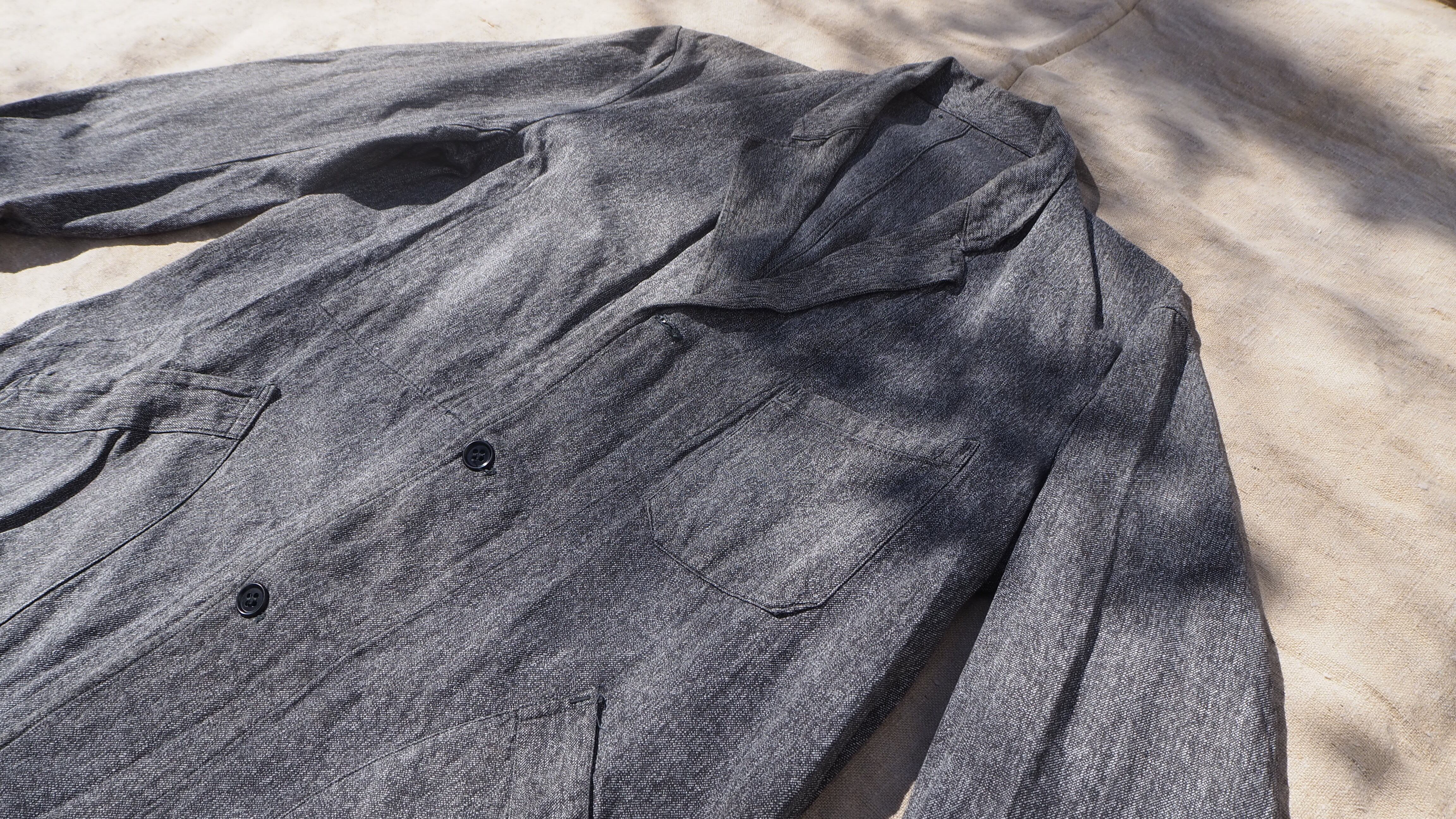 フレンチワークウェアの王道であるブラックシャンブレーコート。